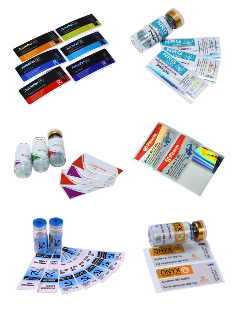 Examples of vial labels with different effects
